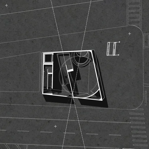 Typologically, the Film Center is both a private and public institution. This project is programmed to have hybrid functions as a theater (dedicated to Akira Kurosawa and Stanley Kubrick) and as a production studio.The function massing is firstly extracted and then organized from a series of scenes from Kurisawa’s Hidden Fortress. The form is dedicated to Kubrick’s 2001 A Space Odyssey which one point perspective view and distorted sensation is commonly applied. The atrium and main structure form a curve which can be seen from multiple dimensions and also allows different visual and physical experiences. Along the major curve created by the atrium and material-change, two deviated axis are formed. These two axis are also the projection of the city axis.