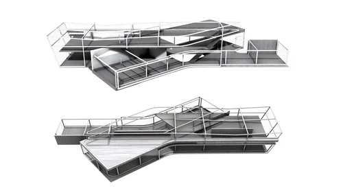 In this project, I started to reconsider the nature of surfaces and its relationship with the occupants under the architectural argument of modulating in/ex-teriorities. The occupants here are not only to be considered as characters, but rather as human bodies that perform specific activities in specific spaces at specific times. Many elements affect occupant’s reaction in an architectural context, such as infrastructure, maps, advertisements... They are not only visual but also commercial, social, and political. Thus, in this operation, on the basis of hybridizing two materials of two design approaches, I also considered the hybridization of occupants’ experiences by simulating their reaction to the perception provided by the structure. What if the thinnest surface provides the most private experience? What if the most massive solid provide the most public sensation?